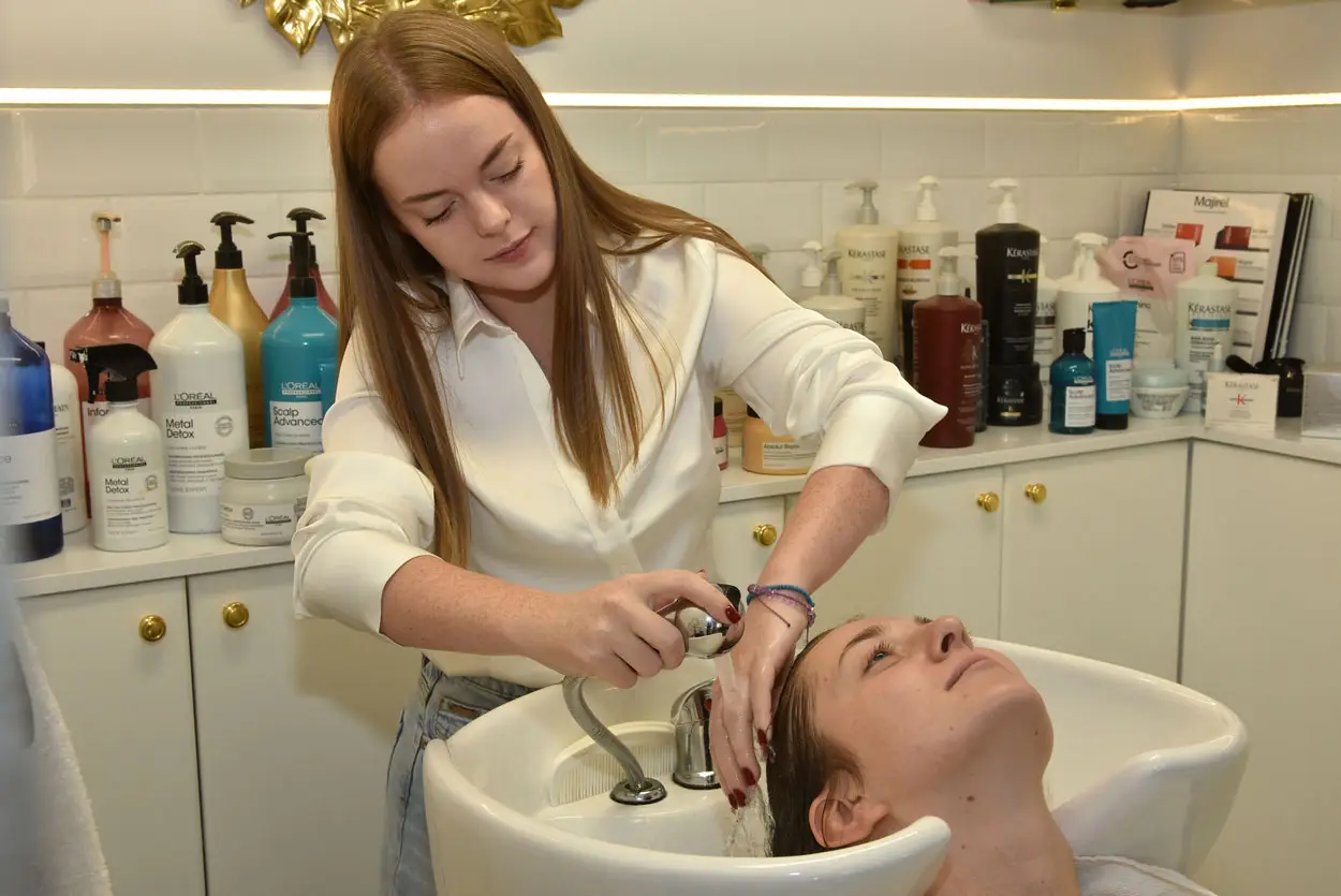 - Učenje tehnika pranja kose sa negom - tehnike pranja prilagođene tipu kose, sa opuštajućom masažom glave